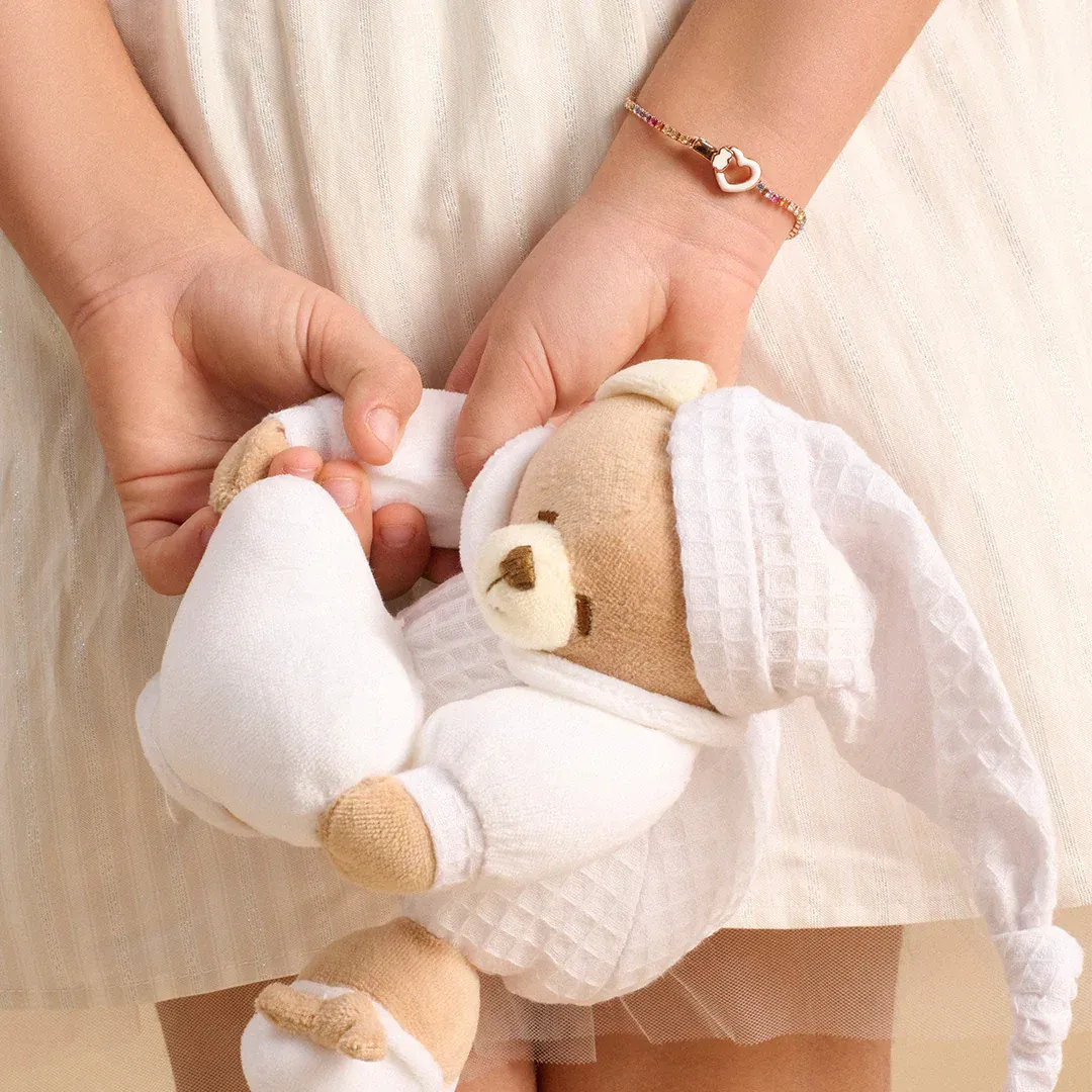 Elemento iconico delle creazioni Nanán è il tenero orsetto, simbolo riconoscibile del marchio e dettaglio amatissimo che accompagna molti dei gioielli della collezione. Questo piccolo protagonista rappresenta l’affetto, la protezione e la tenerezza che caratterizzano il mondo Nanán.