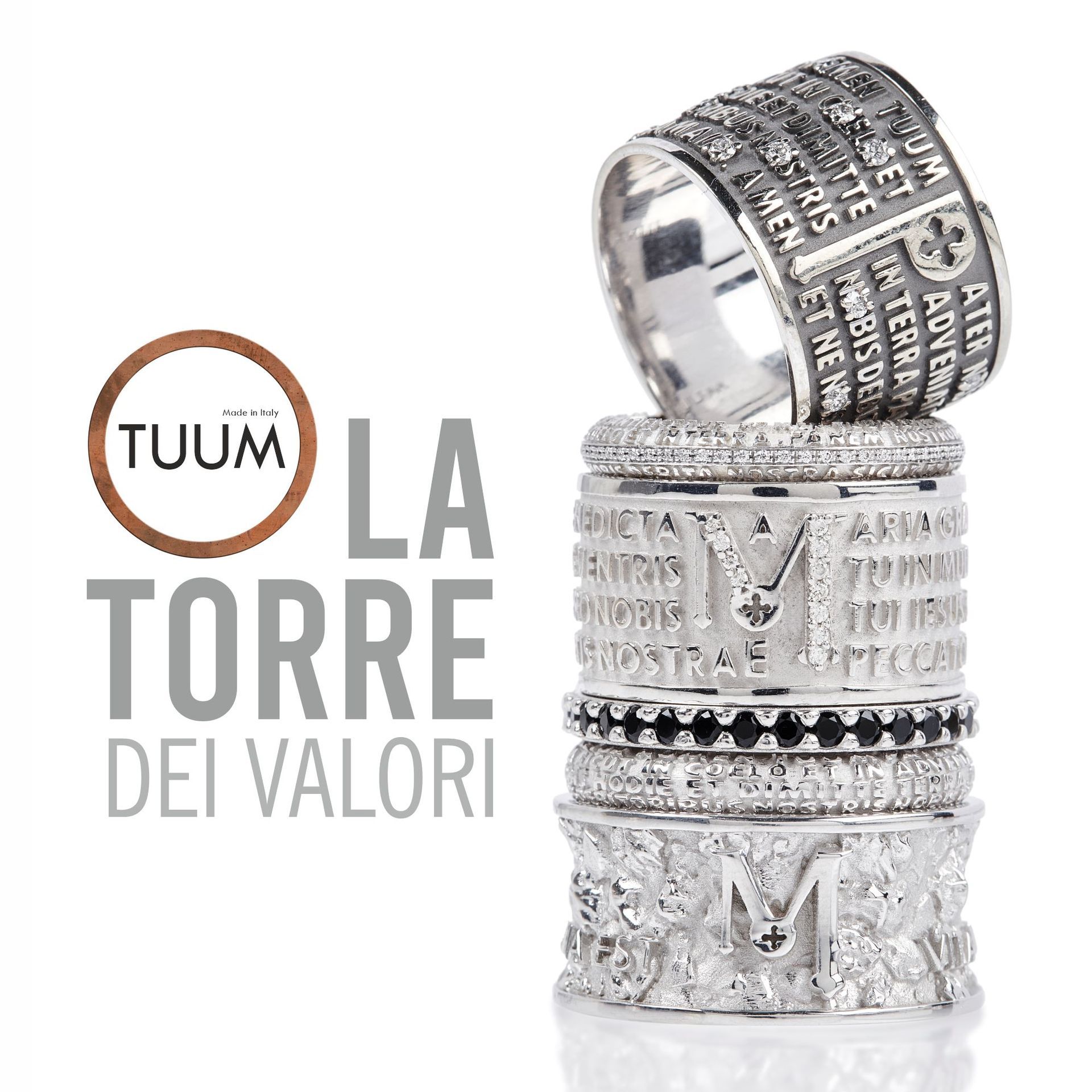 I gioielli TUUM nascono dal desiderio di rendere tangibile la spiritualità attraverso un oggetto prezioso. Dal 2009 il brand realizza anelli, collane e bracciali che trasformano parole e preghiere in elementi di design, dando forma a gioielli che raccontano emozioni profonde e relazioni importanti.